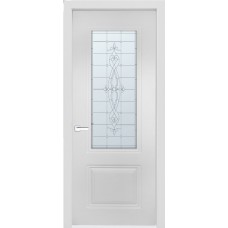 Дверь с ПВХ покрытием Эмма 50 ДО (Софт Белый, Прозрачный наливной витраж)